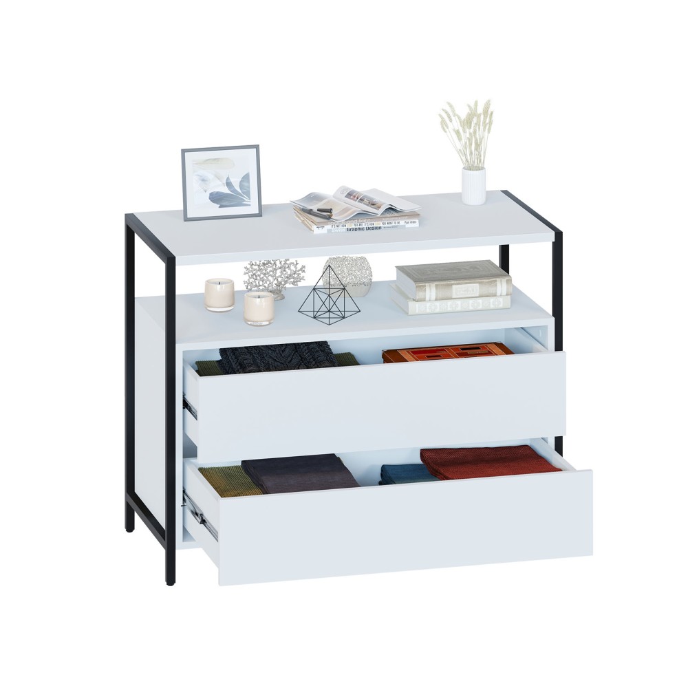 Комод широкий Т-400, металл/ЛДСП Белый