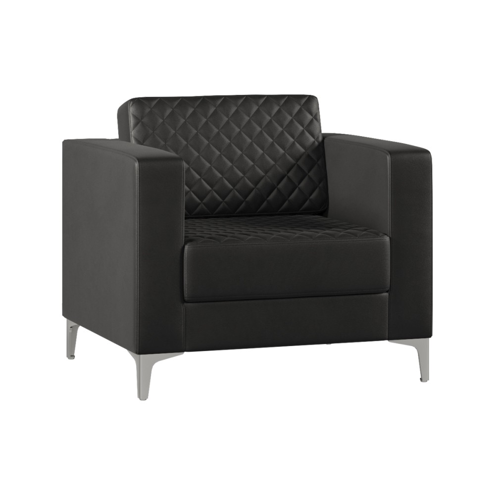 Особую привлекательность модели придает декоративная строчка ромбиками на спинке и сиденье, которая добавляет изделию утонченности и характера. Прочность кресла обеспечивается качественным каркасом из ДВП, ДСП и бруса хвойных пород. Хромированные металлические ножки не только украшают изделие, но и гарантируют устойчивость при максимальной нагрузке до 120 кг.