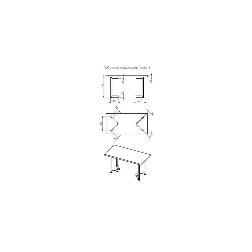 Подстолье Лофт 4 представляет собой металлическую конструкцию, выполненную из профильной трубы 30х60х1,5 мм, имеет регулируемые опоры. Каркас может окрашиваться черной порошковой краской или покрываться бесцветным лаком (цвет Лофт). Один комплект упаковывается в воздушно-пузырчатую пленку.Рекомендуемый размер столешницы:от 750 до 800 мм (круг)от 600x600 мм до 2000x800 мм (прямоуг.)