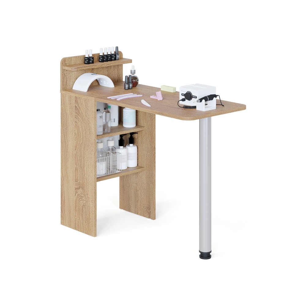 Многофункциональный раскладной стол СП-19. Это компактная модель с металлической хромированной опорой, регулируемой по высоте, и вместительными полками для хранения необходимых вещей и инструментов. Современный универсальный стол может использоваться как домашнее рабочее место с возможностью размещения компьютера и необходимых документов. Может применяться как маникюрный стол, используемый в домашних условиях или салонах красоты, а также как раскладной обеденный стол, идеально подходящий для малогабаритных квартир.
