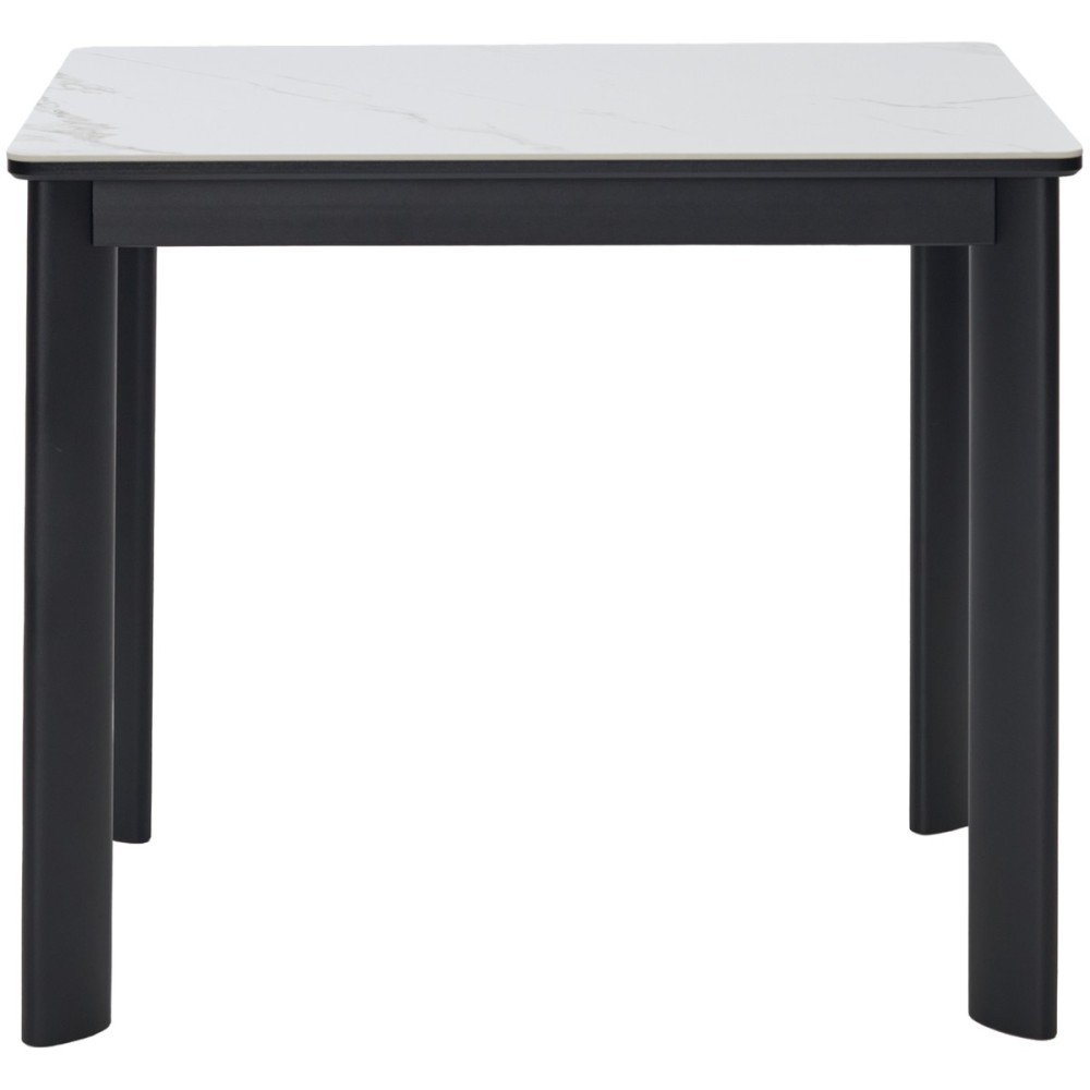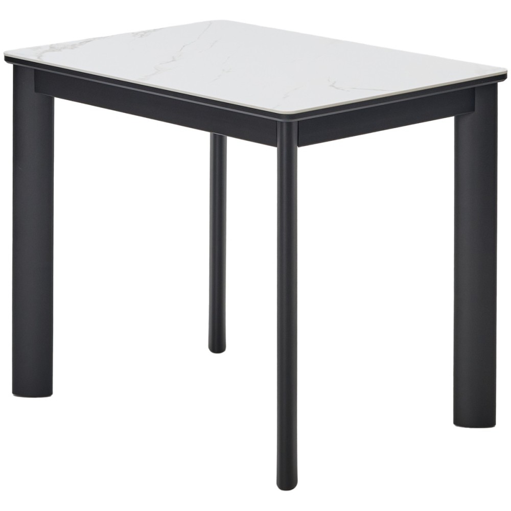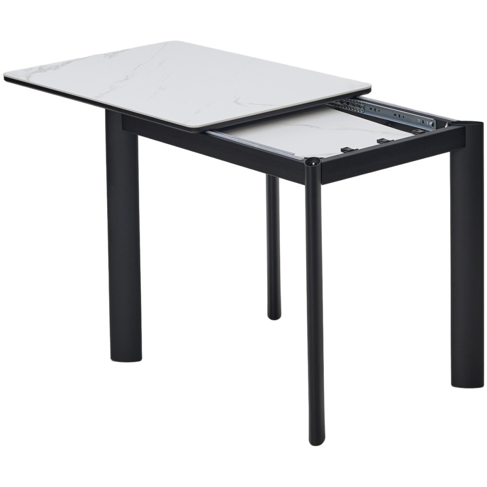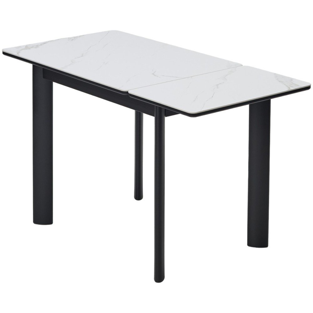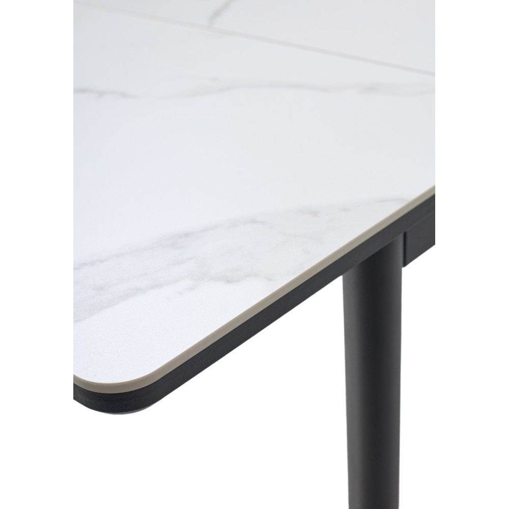 Стол обеденный раздвижной RIVOLI 140 глянцевый бело-коричневый мрамор/черный