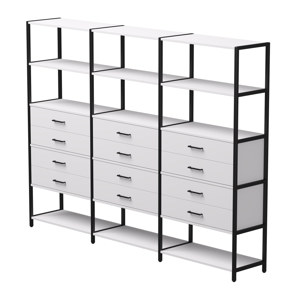 Комплект стеллажей с шкафом №16 EVO 3235x385x1840 Белый/Черный