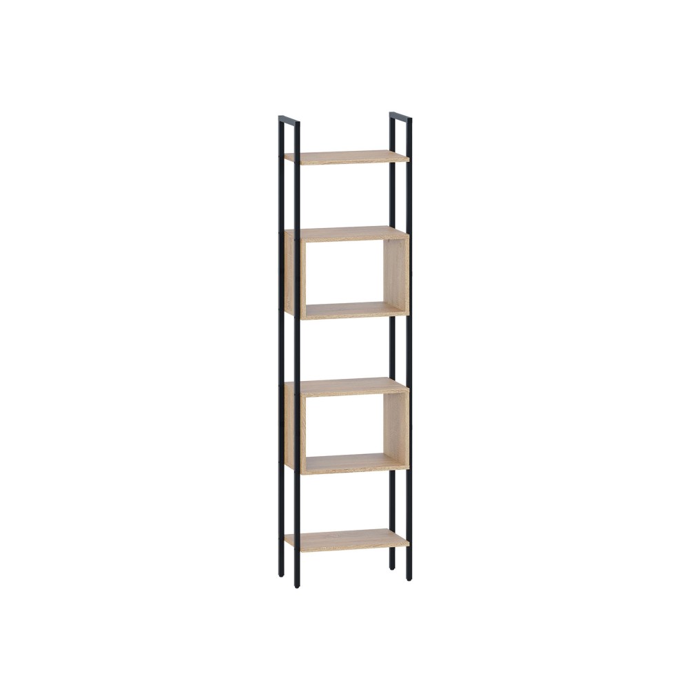 Стеллаж СТ-402 с открытыми полками и нишами представляет собой стильное и функциональное решение для организации пространства в гостиной, спальне или офисе. Благодаря продуманному дизайну предметы можно поставить вертикально, облокотив на боковины стеллажа. Прочный металлический каркас с регулируемыми по высоте подпятниками подчеркивает стиль лофт и придает изделию интересный вид. Компактные размеры модели и отсутствие задней стенки добавляет легкости и воздушности даже в небольшом помещении.