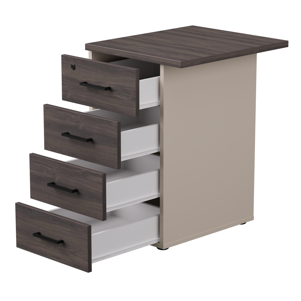 в современном стиле, можно использовать для кабинета, для офиса, с каркасом из ДСП, цвет каркаса: бежевый, размеры: ширина : 51см, высота : 75.5см, глубина : 60см, вес нетто : 34кг, количество ящиков: 4, тип: приставной.